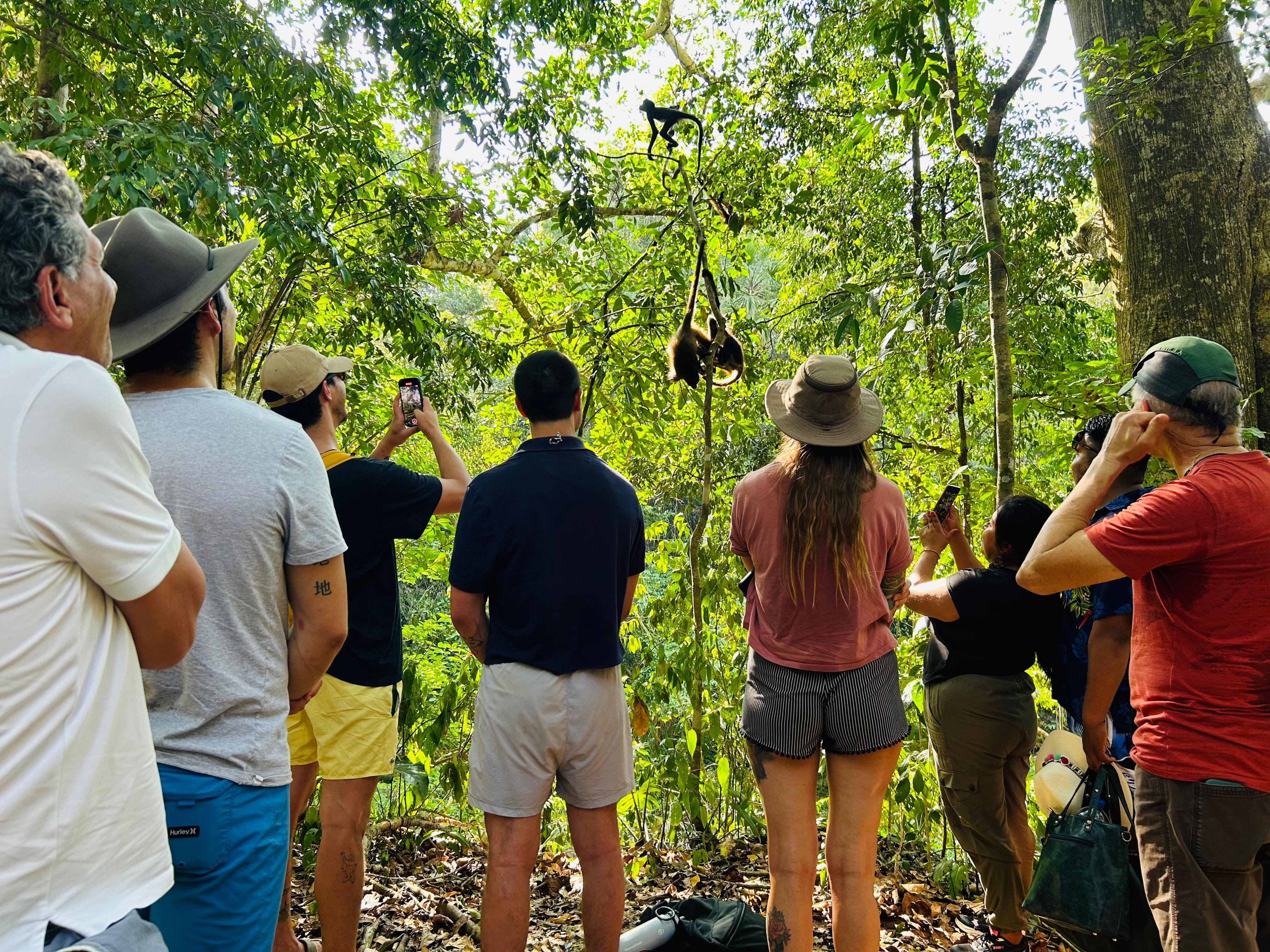 Spider Monkeys: Local guides, experts in the area, lead you along trails to locate families of spider monkeys in their natural habitat, swinging and moving through the treetops.